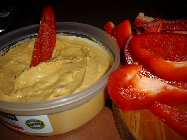 But guess what? I love hummus. I would like to eat it everyday. It is without a doubt the most delicious and easy snack in my refrigerator. I am really partial to the roasted red pepper hummus from Aldi. It is so creamy and amazing. I eat it with peppers. I eat it with carrots. I eat it with celery. I eat it with pita chips. Sometimes I just eat it with my finger. I eat it for a side at lunch. I eat it for breakfast. I eat it for an afternoon snack. I eat it for a midnight snack. The possibilites of this are endless and I can't get enough!