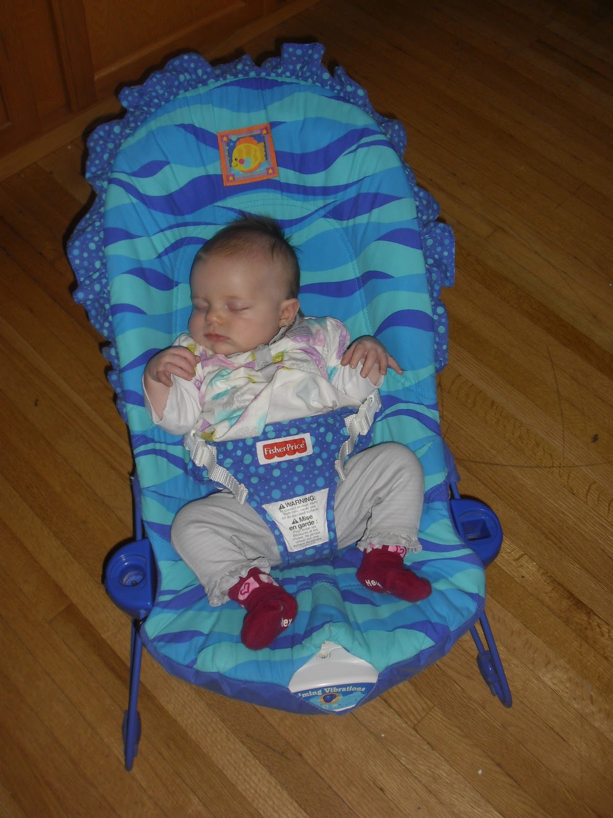 The other day Aubrey fell asleep in her vibrating chair with her arms sticking straight out.
